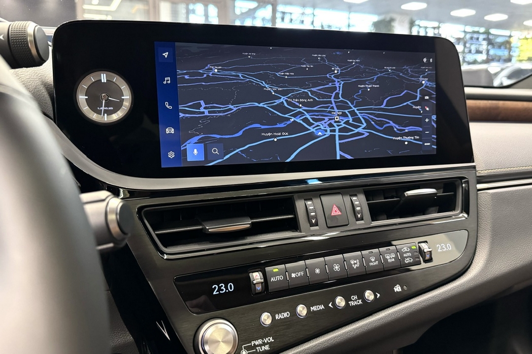 Cụm đồng hồ sau vô lăng hiển thị sắc nét, khả năng tùy biến qua lại các chế độ digital, analog. Sắp xếp và đồ họa ấn tượng giúp người lái nắm bắt các thông tin nhanh chóng, chính xác. Tiện lợi hơn, lần đầu ES được trang bị HUD (màn hình hiển thị thông tin trên kính lái). Từ tốc độ xe, bản đồ dẫn đường, chế độ giải trí, la bàn… đều có thể được show lên đầy đủ. Hạn chế việc phải đưa mắt qua lại với đồng hồ phía dưới.