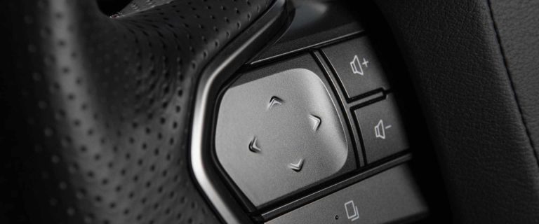 Vô lăng RX500h bản hiệu năng cao này được thiết kế chắc chắn, đục lỗ tại vị trí 3–6–9 giờ. Các phím chức năng lưỡng tính (cảm ứng & vật lý) liên kết trực tiếp với màn hình HUD, giúp người lái hạn chế rời mắt khỏi đường đi.